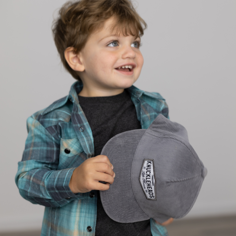 This classic corduroy snapback has a distressed look and is perfect for an everyday look. The adjustable strap helps to keep your little one comfortable throughout the day and the velcro ensures you can customize it and allow for growth.
