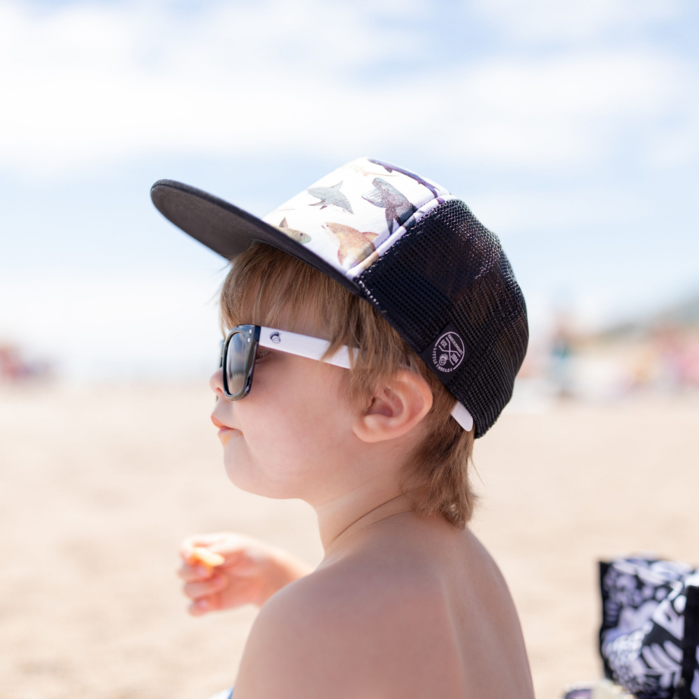 What toddler doesn’t love a fun shark display on a flat bill hat?