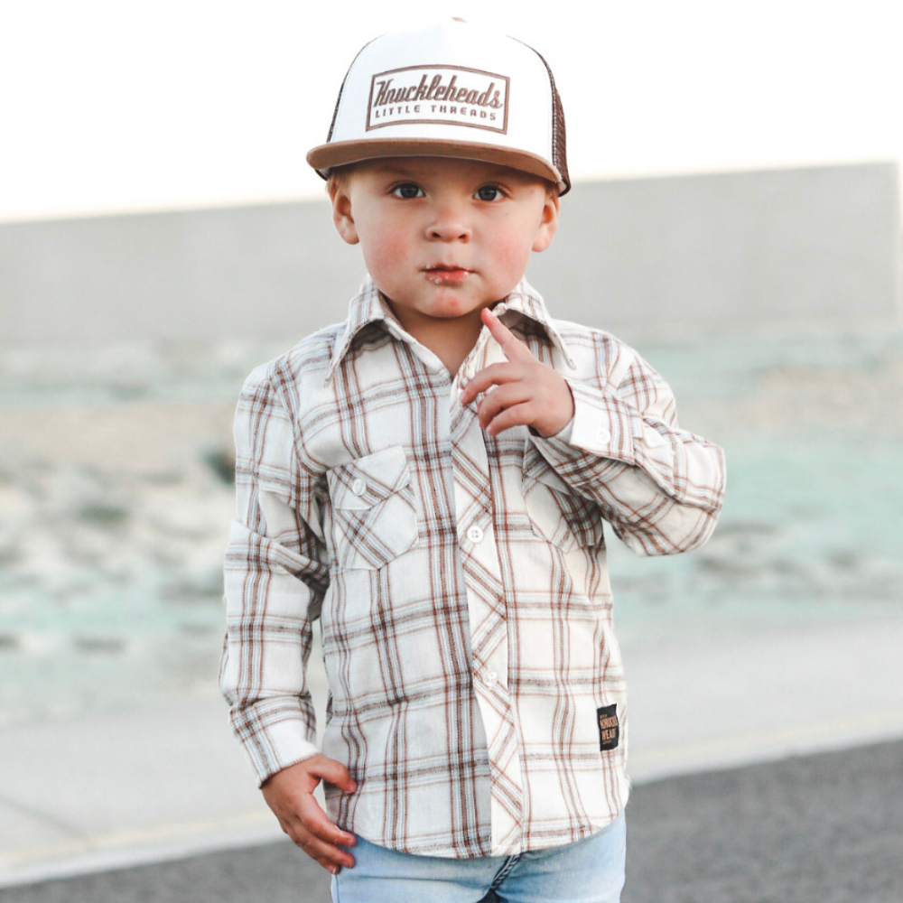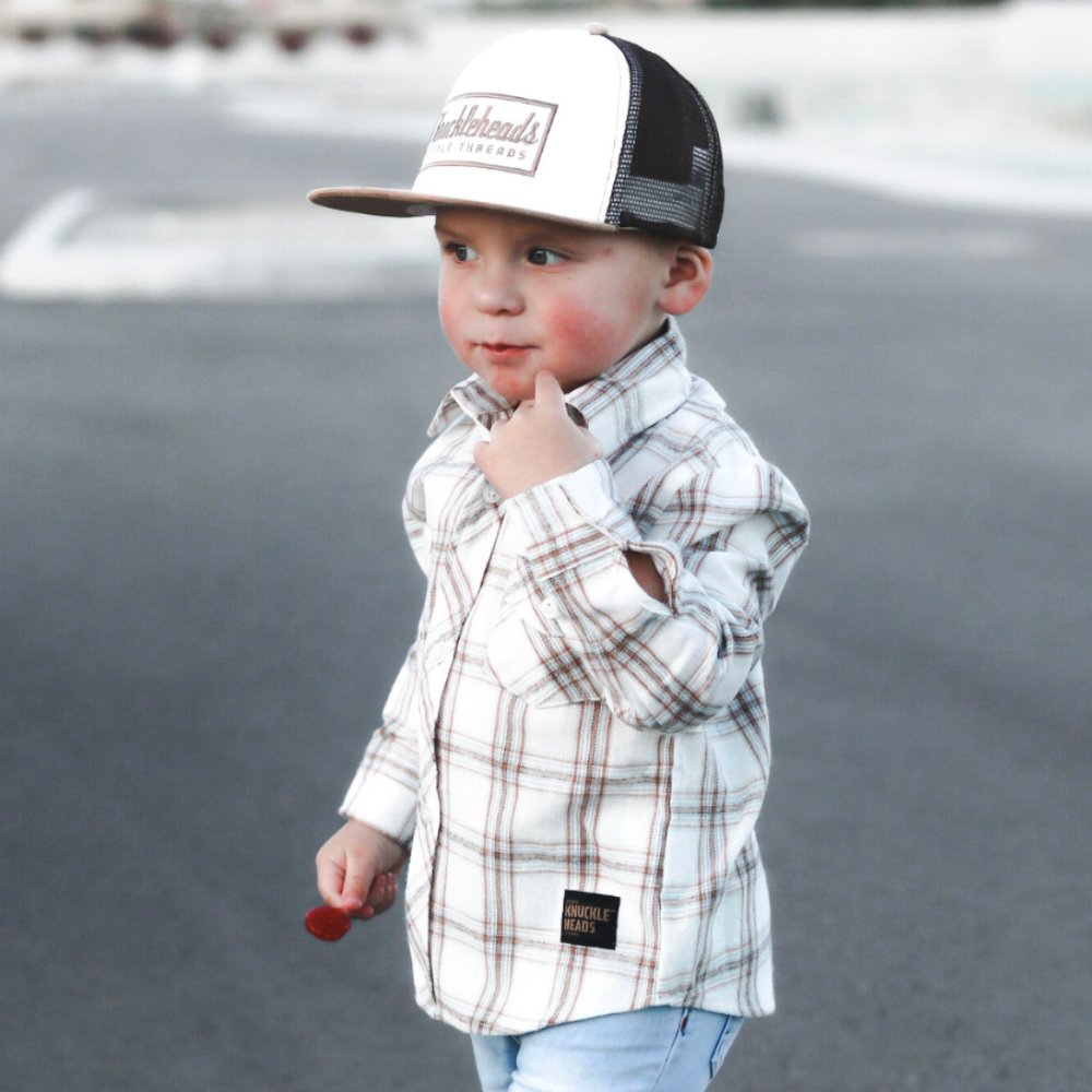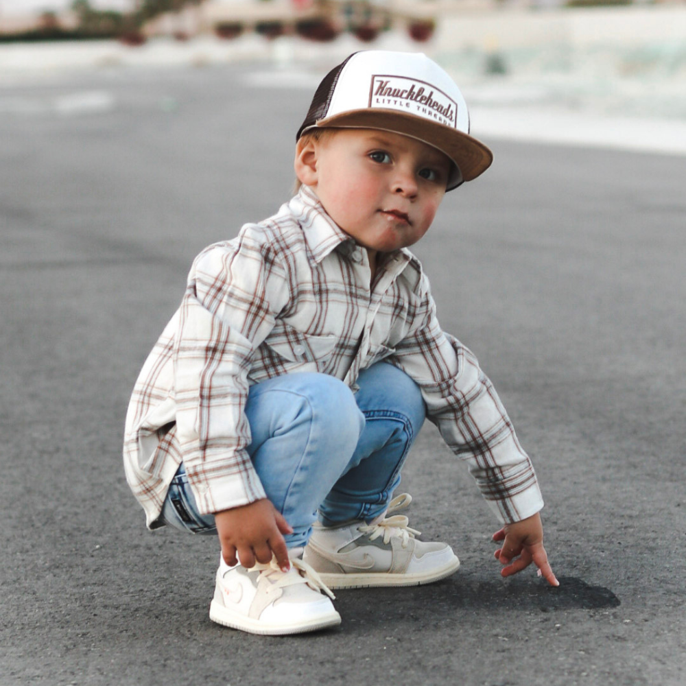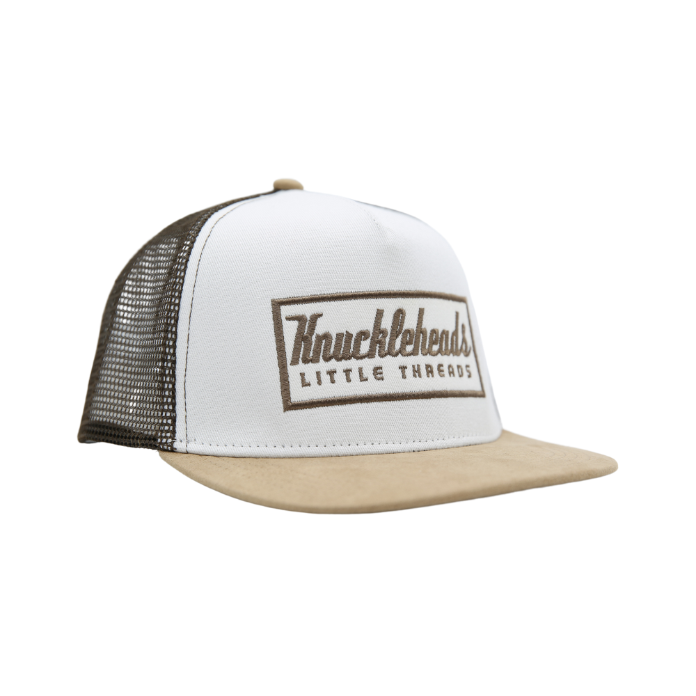 Nate Kids Trucker Hat is perfect for outdoor play and adventures. With a breathable brown mesh back, flat brim, and Knuckleheads patch, this comfortable and stylish hat not only looks great but also provides excellent sun protection from harmful UV rays. Crafted from high-quality materials, it's also durable enough to handle any amount of rough and tumble.