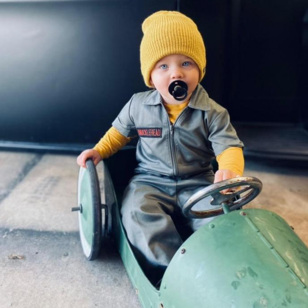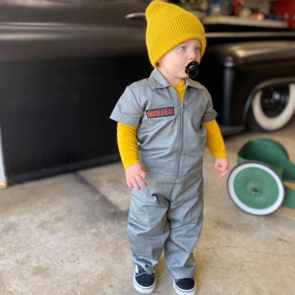 One of Knuckleheads' timeless classics, these coveralls are always a hit. Your little mechanic will look the part and be ready to tackle any job while dressed in this comfortable cotton knit romper from Knuckleheads.