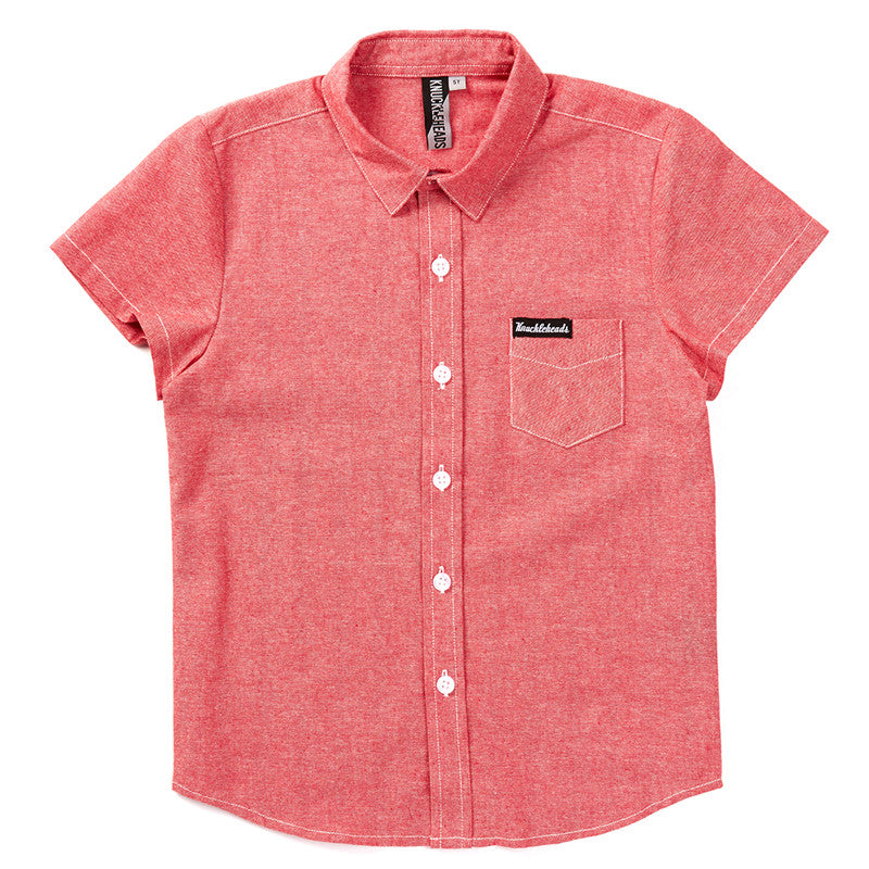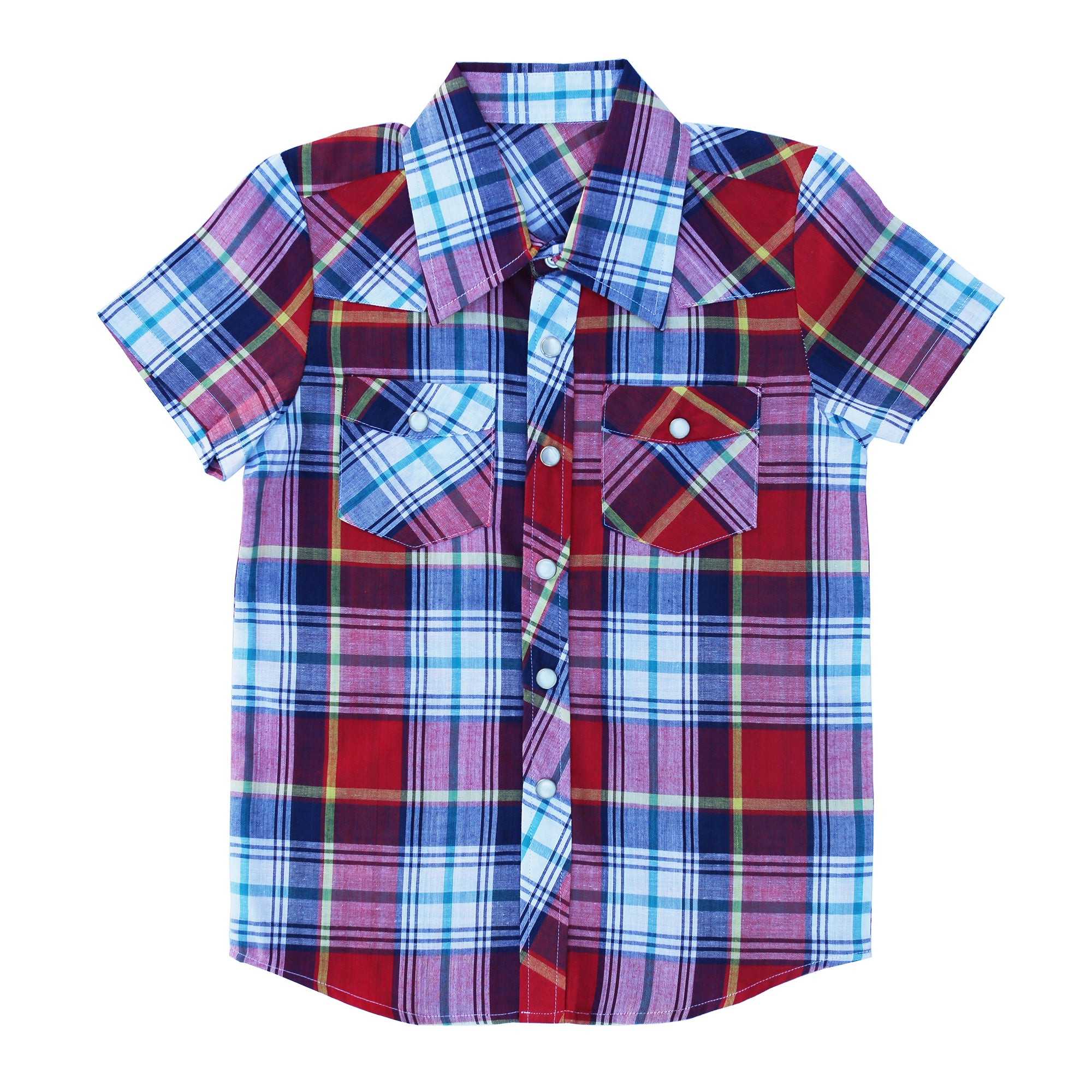Knuckleheads Clothing Cash Red and Blue Plaid Button Down Short Sleeve Kids Boy Shirt
