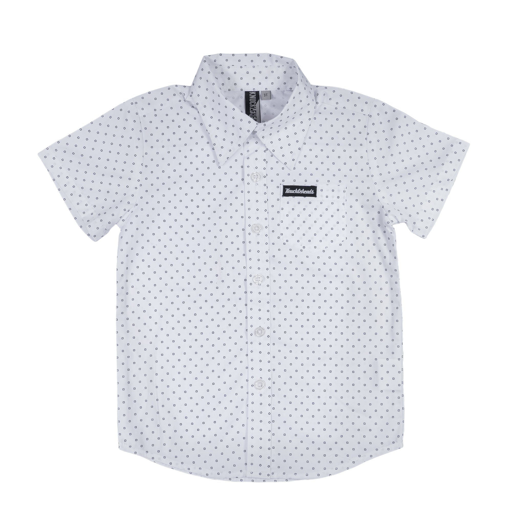Born to Love Boy's White Button Down Short Sleeve Shirt