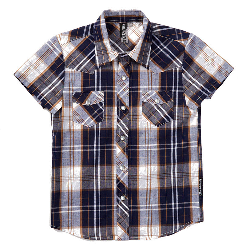 Knuckleheads Clothing Knox Plaid Button Down Short Sleeve Kids Boy Shirt