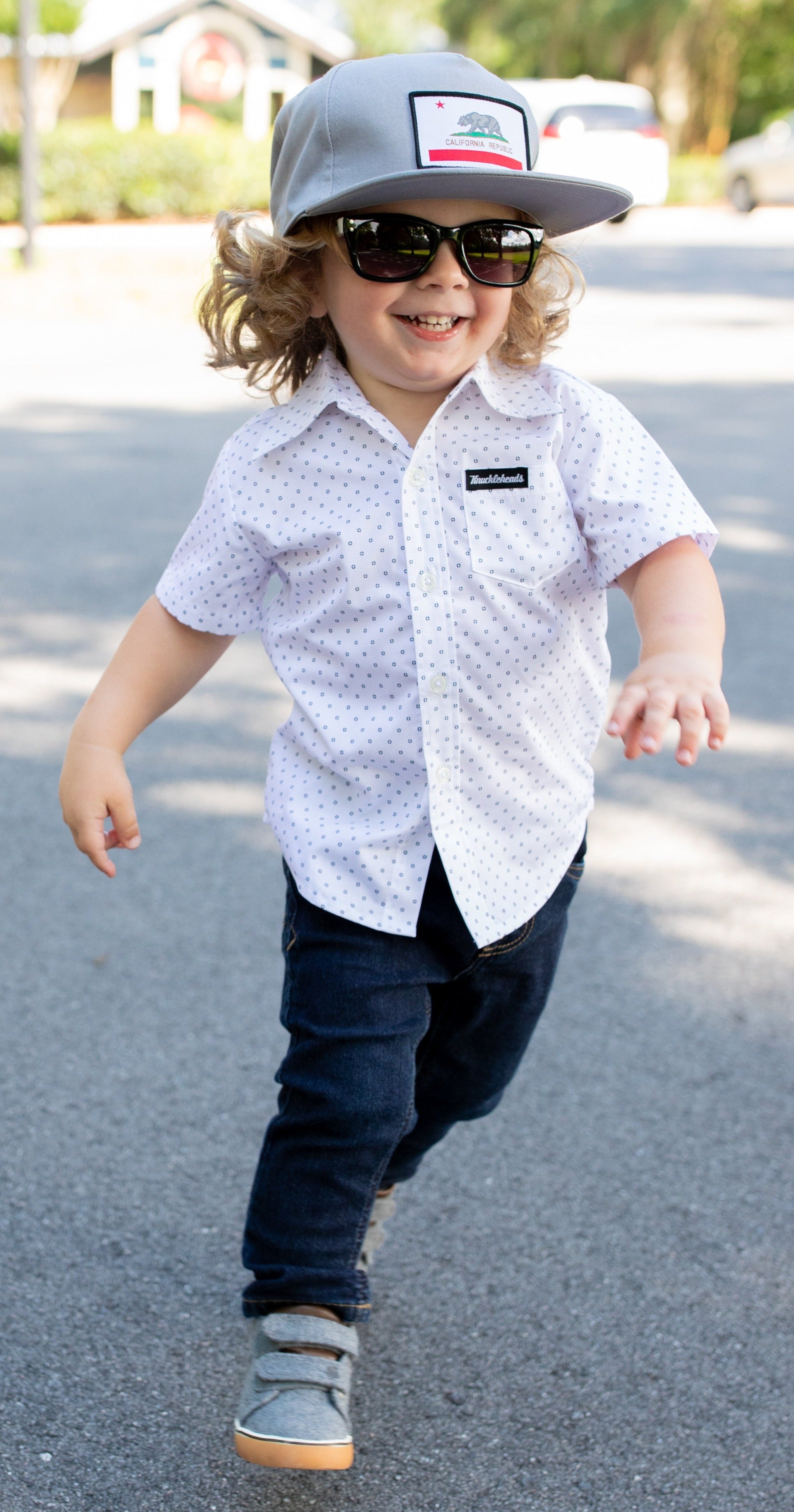 Born to Love Boy's Grey Button Down Short Sleeve Shirt