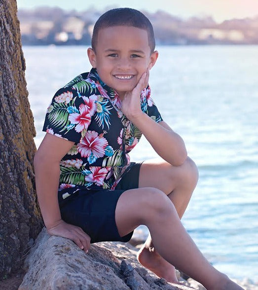 Born to Love Boy's Black Button Down Short Sleeve Shirt