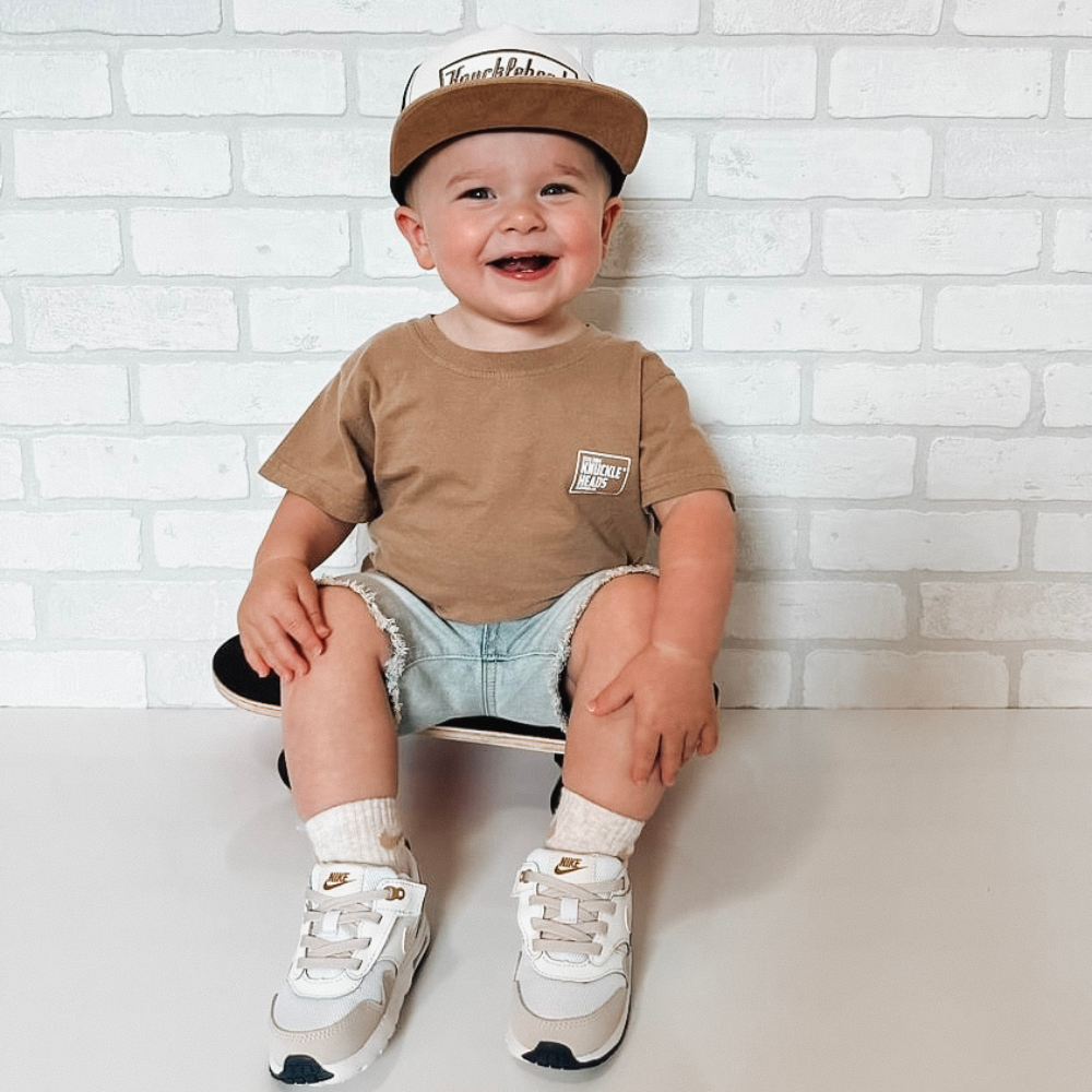 Kids' Classic Caramel T-Shirt: Embrace timeless style with this chic and versatile tan tee, specially designed for young fashionistas. The comfortable and durable fabric ensures a perfect fit for all-day wear. Its neutral hue complements any outfit, making it an ideal choice for various occasions. Crafted with soft cotton, this caramel shirt guarantees comfort and confidence, a must-have addition to your child's wardrobe.
