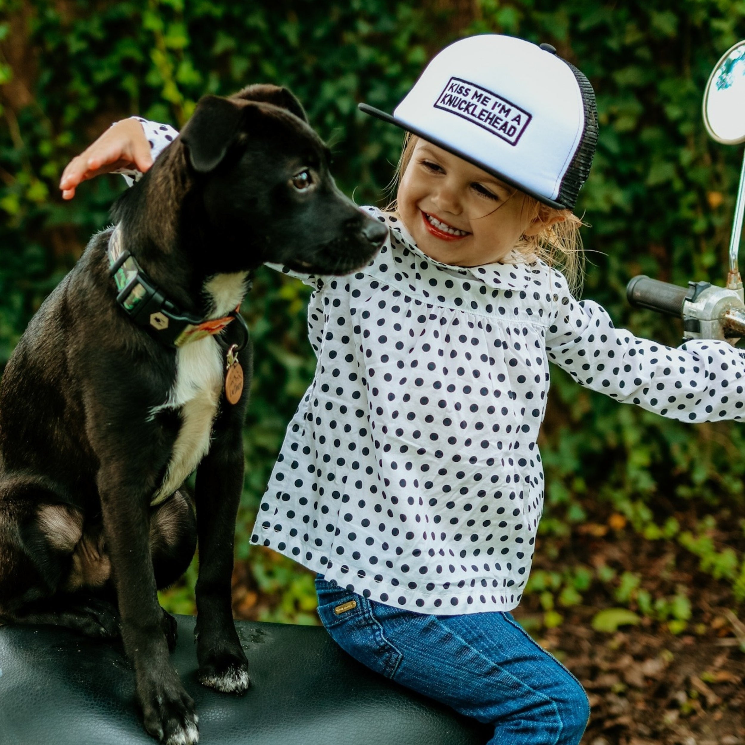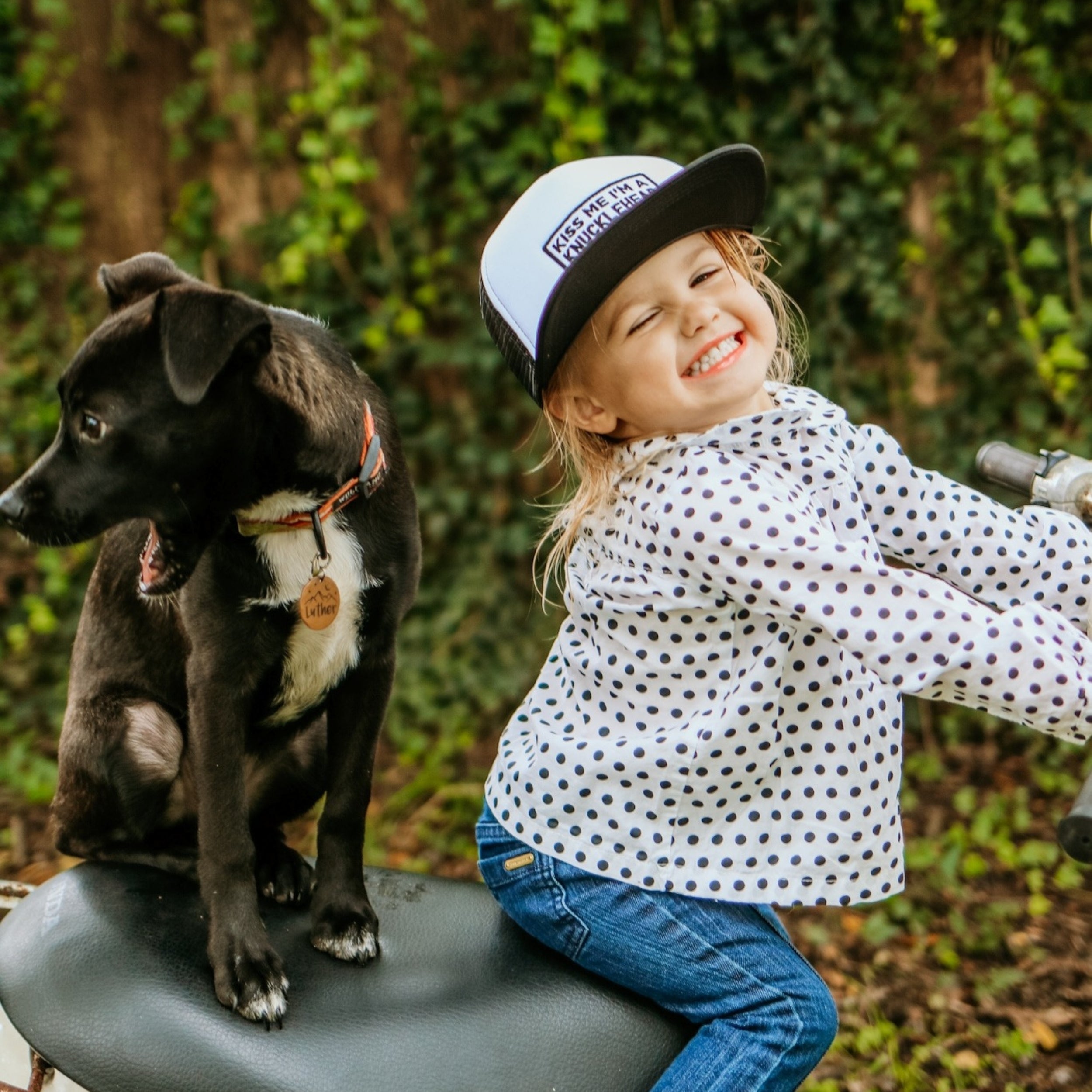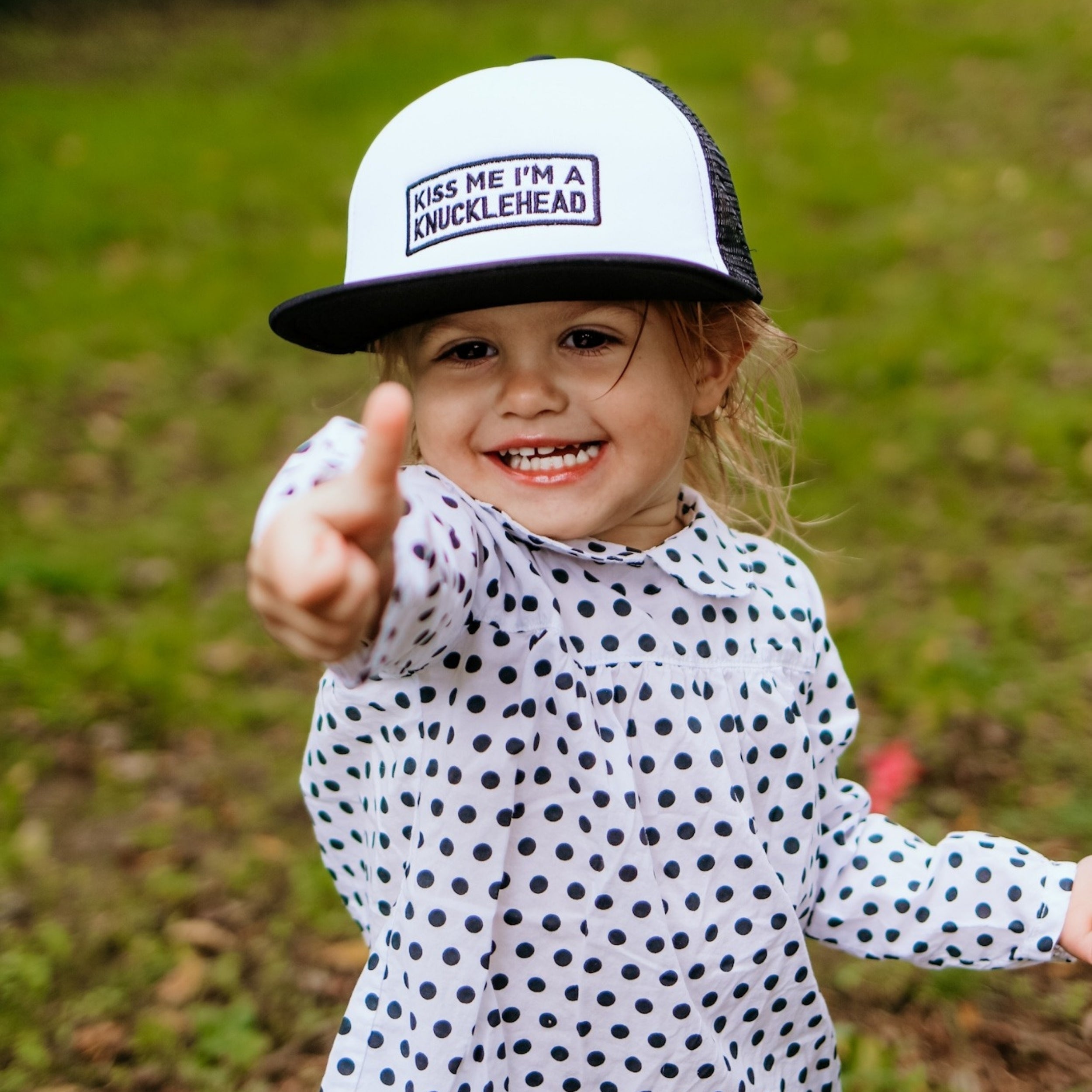 The Kiss Me Trucker Hat is perfect for outdoor play and adventures. With a breathable black mesh back, flat brim, and a custom patch, this comfortable and stylish hat not only looks great but also provides excellent sun protection from harmful UV rays. Crafted from high-quality materials, it's also durable enough to handle any amount of rough and tumble.