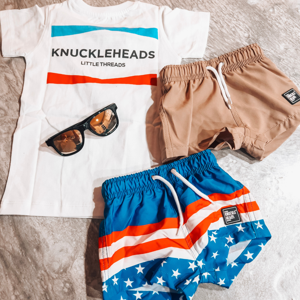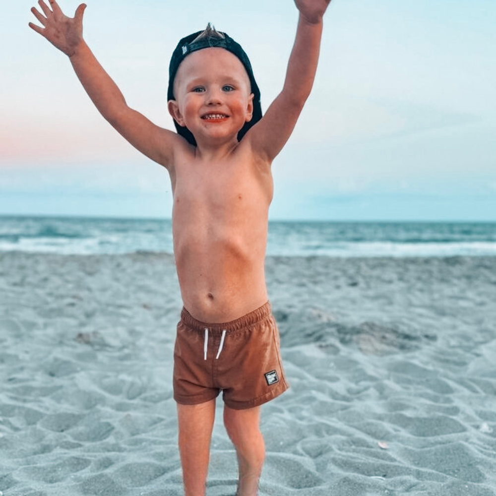 Whether they're diving into the pool, building sandcastles at the beach, or simply having fun in the sprinklers, your little one's gonna have a blast in our comfy swim shorts.